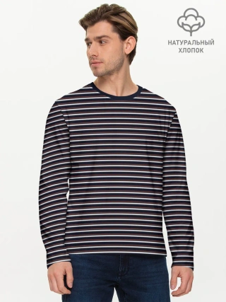 Мужской лонгслив хлопок / Тёмно-синяя полоска