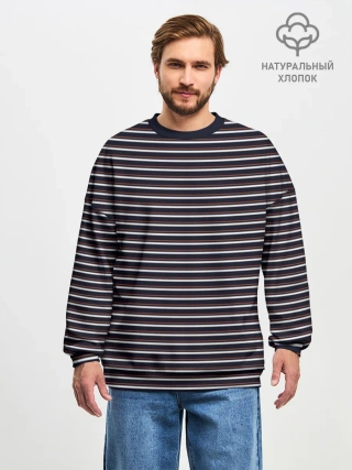Мужской лонгслив оверсайз хлопок / Тёмно-синяя полоска