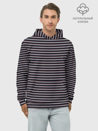 Худи мужской база хлопок / Тёмно-синяя полоска