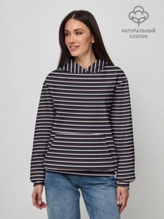 Худи женский база хлопок / Тёмно-синяя полоска