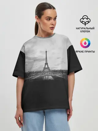Лонгслив женский. Хлопок / Ночная карта Парижа