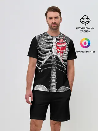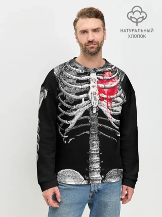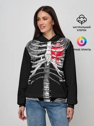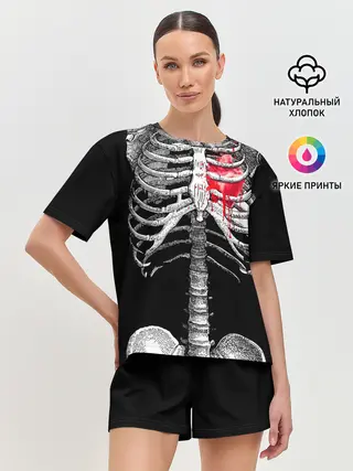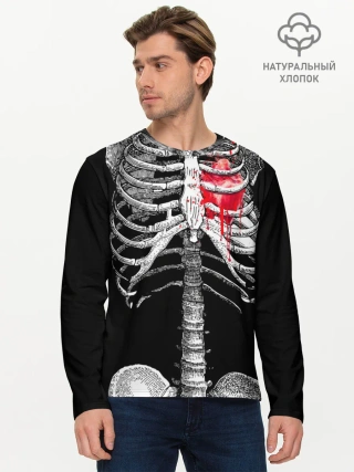 Лонгслив женский. Хлопок / Скелет с сердцем