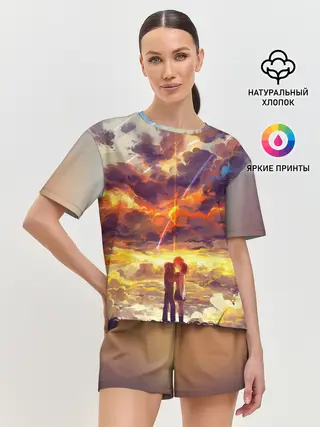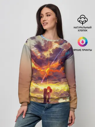 Лонгслив женский. Хлопок / ТВОЕ ИМЯ, Две кометы