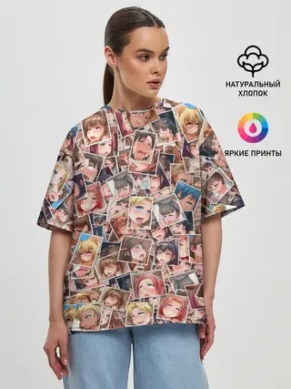 Женская футболка оверсайз / Ahegao faces fhoto