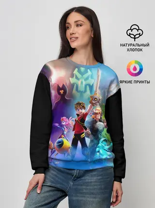 Лонгслив женский. Хлопок / Корабли и девушка викинг