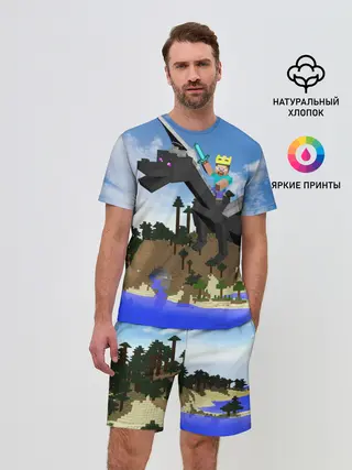 Мужская пижама с брюками / Стив на Эндер Драконе