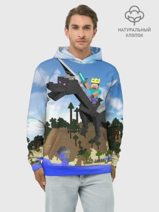 Худи мужской база хлопок / Стив на Эндер Драконе