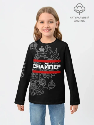 Детский лонгслив / Снайпер, белый герб РФ