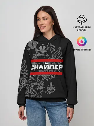 Женское худи / Снайпер, белый герб РФ