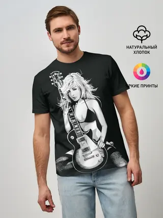 Лонгслив женский. Хлопок / Девушка с гитарой