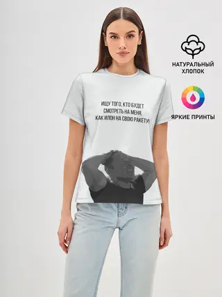 Женская базовая футболка / Илон и ракета