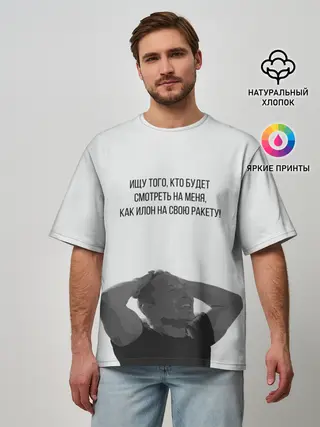 Мужская футболка оверсайз / Илон и ракета