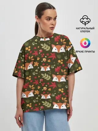 Женская футболка оверсайз / Лисоньки в лесу