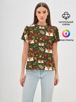 Женская базовая футболка / Лисоньки в лесу