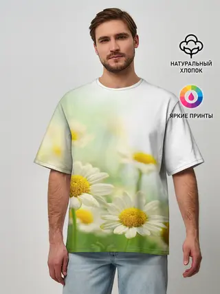 Мужская футболка оверсайз / Полевые ромашки