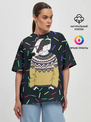 Женская футболка оверсайз / Барсук