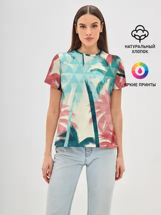Женская базовая футболка / Абстракция Пальмы Текстура