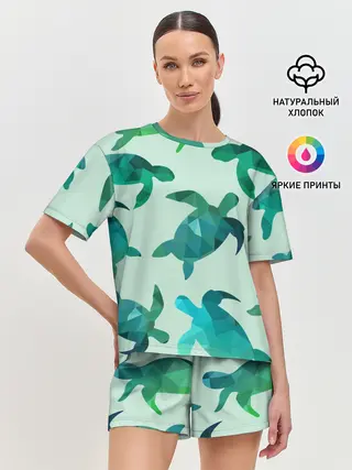 Женская пижама с шортами / Абстракция Черепахи Полигон