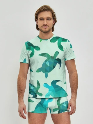Мужские трусы с футболкой / Абстракция Черепахи Полигон