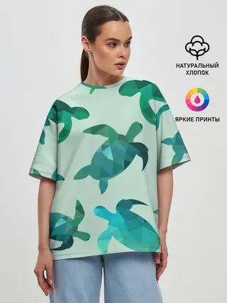 Женская футболка оверсайз / Абстракция Черепахи Полигон