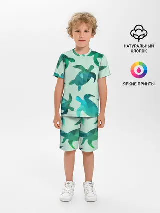 Детская пижама с шортами / Абстракция Черепахи Полигон