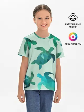 Детская базовая футболка / Абстракция Черепахи Полигон