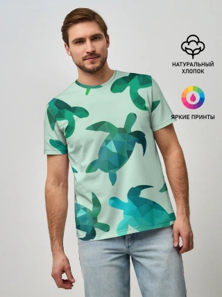 Мужская базовая футболка / Абстракция Черепахи Полигон