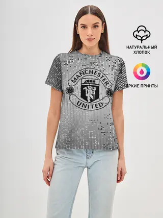 Женская базовая футболка / Манчестер Юнайтед Pixels