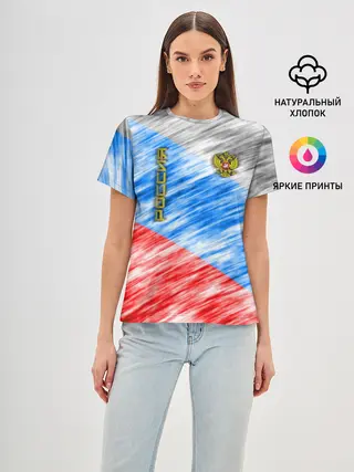 Женская базовая футболка / Российский флаг с гербом