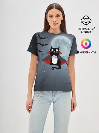 Лонгслив женский. Хлопок / Найди чёрного кота