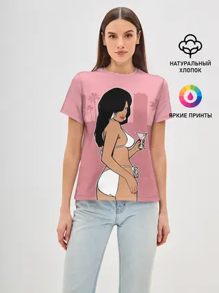 Женская базовая футболка / GTA VC - Девушка с мартини