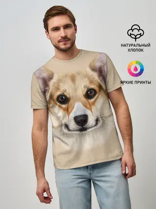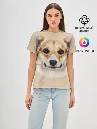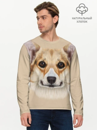 Лонгслив женский. Хлопок / Вельш корги пемброк
