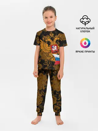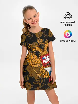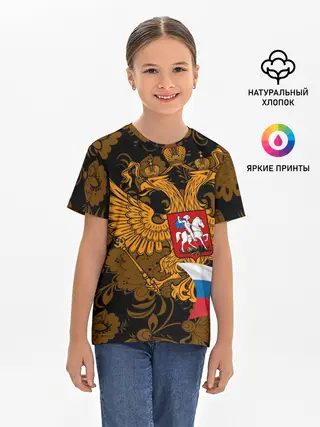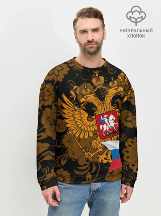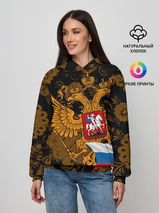 Лонгслив женский. Хлопок / Российский флаг с гербом