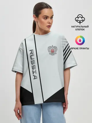 Лонгслив женский. Хлопок / РВиА, белый герб РФ