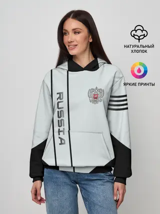 Лонгслив женский. Хлопок / Пилот, белый герб РФ