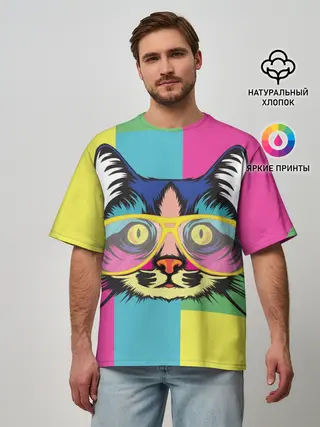 Мужская футболка оверсайз / Яркий Кот