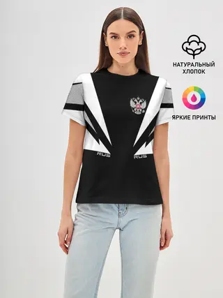 Лонгслив женский. Хлопок / РВиА, белый герб РФ