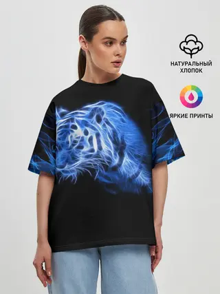 Женская футболка оверсайз / Синий тигр