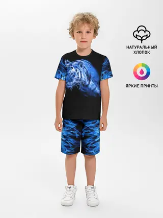Детская пижама с шортами / Синий тигр