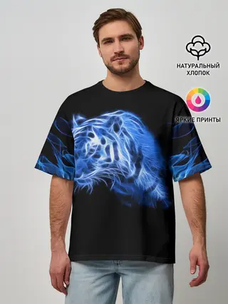 Мужская футболка оверсайз / Синий тигр
