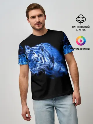 Мужская базовая футболка / Синий тигр