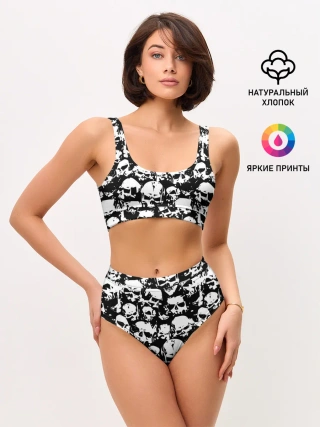 Лонгслив женский. Хлопок / Мексиканские черепа