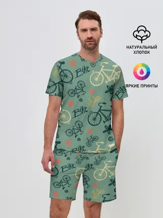 Мужская пижама с брюками / Велосипед Текстура