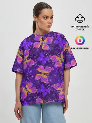 Женская футболка оверсайз / Розовые бабочки