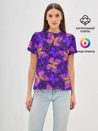 Женская базовая футболка / Розовые бабочки