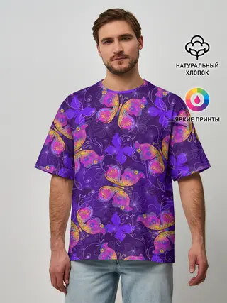 Мужская футболка оверсайз / Розовые бабочки