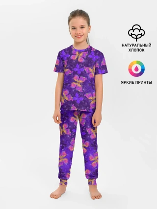 Детская пижама с брюками / Розовые бабочки
