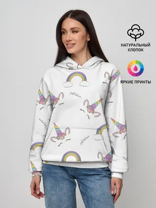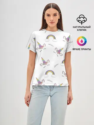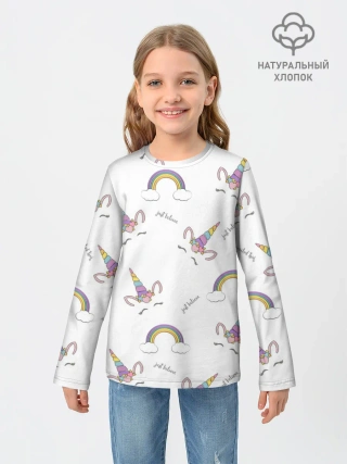 Лонгслив женский. Хлопок / Единорог радуга