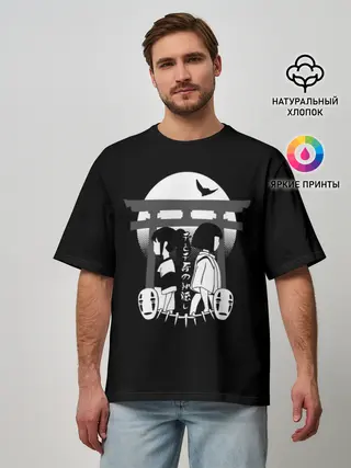 Мужская футболка оверсайз / Хаку и Тихиро, спина к спине