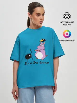 Женская футболка оверсайз / Хомяк Бо ругается с духами сажи